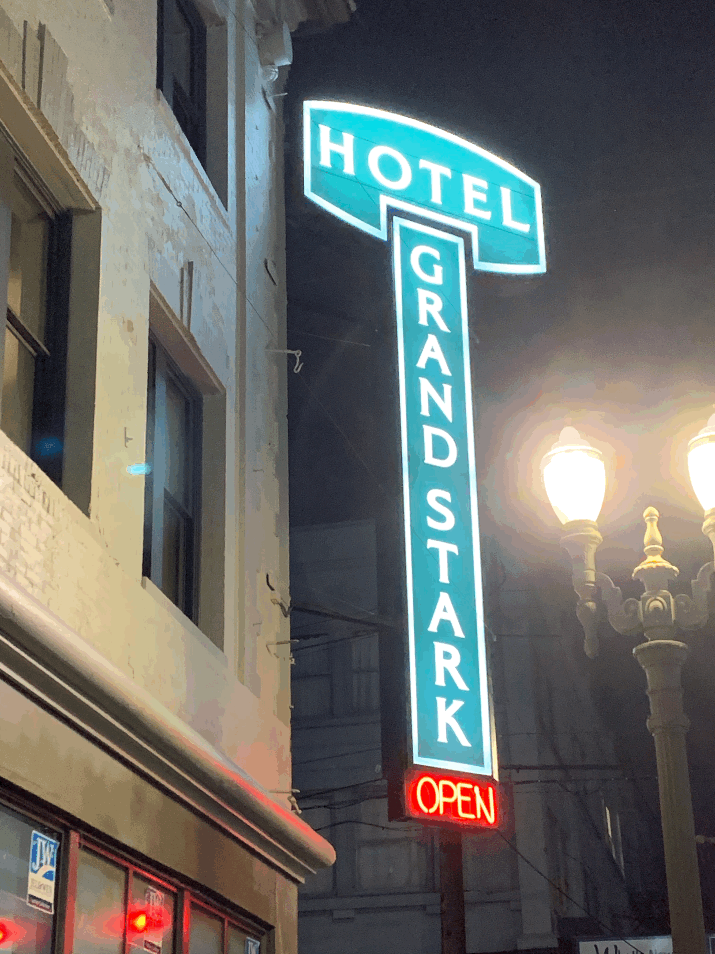 Hotel Grand Stark, our historic renovation project in Portland’s Central Eastside, is nearing completion. Earlier this month, our hotel operating partner, Pali Group, launched the Hotel Grand Stark website. In anticipation of a spring opening, Pali is now booking reservations for June 1st and beyond. This week, we installed the new marquee on the northeast corner of the building at the intersection of SE Grand and Stark. The hotel is on track to receive its certificate of occupancy in March and is projected to open in the spring.